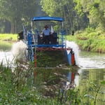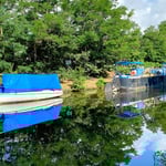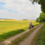 Die holprige Strasse führt in steilen Kurven in eine dicht bewaldete Senke zum Kanal. Jetzt, am Morgen, die ersten Sonnenstrahlen spiegeln die mächtigen Eichen und Platanen im klaren Wasser, ist die Stille hier unten beinahe vollkommen. Ein Specht hämmert, zweimal zeigen Eisvögel ihr prächtig blau-oranges Gefieder. Wir geniessen die Ruhe, freuen uns auf gemütliche Velokilometer und den zweiten Morgenkaffee irgendwann später. Für unsere 290 km sind vier bis fünf Tage Velofahren eingeplant. Wir sind froh, dass die hier am Oberlauf ins Wasser gestürzten Bäume im Bereich des Radwegs weggeräumt wurden. Einige Fischer baden Würmer, ansonsten ist niemand unterwegs, schon gar keine Radfahrer. Schöner kann ein Velotag kaum beginnen.