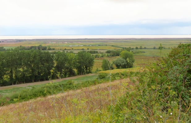 Die letzten Tage seit Lucon waren auf neue Art speziell. Das Land war in gallo-römischer Zeit noch vom Meer überflutet. Nachdem sich das Wasser nach und nach zurückzog, wurde das sumpfige Land durch ein weites Kanalnetz trocken gelegt. Wir pedalen entlang des Canal de Lucon auf einfachen Fahrspuren und schrecken viele Wasservögel und Nutrias auf, die hier nicht an Menschen gewöhnt sind. Riesige Sonnenblumenfelder stehen Spalier, dazwischen grasen Kühe. Zwei Biker und ein Jogger hecheln an uns vorbei, sonst sind wir allein. Heute gibts lange Zeit keinen Kaffee. Dörfer machen sich rar. Genuss-Velofahren, wie wir es lieben.