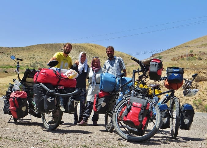 Radlduett, Xenia aus der Schweiz und Severin aus Deutschland, getroffen im Iran