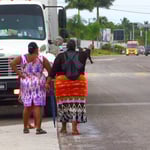 Der Grenzübertritt ist eine kurze Angelegenheit. Man fragt uns nach Zigaretten, Gemüse, Früchte, Alkohol, dann dürfen wir losradeln in das einzige Land Mittelamerikas, in dem Englisch gesprochen wird. Bis zur Unabhängigkeit 1981 hiess Belize Britisch-Honduras (22'966 km2, zum Vergleich die Schweiz mit 41'277 km2) und war britische Kolonie. In Belize, das zum Commonwealth gehört, leben knapp 370'000 Menschen von denen ca. ein Drittel afrikanische Vorfahren hat. Kreolen, Maya, Garifuna, Mestizen, Inder, Chinesen, deutschstämmige Mennoniten u.a. leben friedlich zusammen. Ein buntes Vielvölkergemisch, wie wir es bisher nicht erlebt haben.