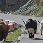 Zum Glück bleibt der erste Schnee nur auf den schattigen Berghängen liegen. Drei Pässe an drei Tagen, alle um 3700 m, fordern uns körperlich und mental. Tagsüber fahren wir in diesen Höhen bei angenehmen zwölf Grad, nachts gibt es leichten Frost. Die dünne Luft macht das Atmen schwer, dafür werden wir mit einem grandiosen Panorama und lange nicht mehr erlebter Fernsicht entschädigt. Die weiten Hochebenen, eingerahmt von schneebedeckten Bergen, einige höher als 5000 m, lassen die Strapazen vergessen und das Velofahren wird zum Genuss. Urtümlich aussehende Jacks weiden in grossen Herden, glotzen uns verwundert an und stieben davon, wenn wir zu nahe kommen. Radfahrer sind offenbar unbekannte Wesen. Wunderbar, dem lästigen Smog für ein paar Tage entfliehen zu können!