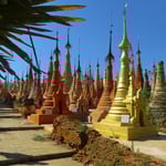 Den Inlesee, ein flacher (zwischen 4 und 5,5 m tief), 120 km2 grosser See, 200 km unterhalb von Mandalay, erreichen wir mit dem Nachtbus in elf Stunden von Bago aus. Der See mit seinem Markt auf dem Wasser, seinen Dörfern auf Pfählen und den schwimmenden Gemüsegärten steht bei den Touristen hoch im Kurs. Da wollen wir nicht aussen vor bleiben und wagen uns ins Getümmel (es hat Touristen am Inlesee, wir stehen uns aber nie auf den Füssen herum).