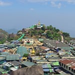 Der Goldene Fels ist eine der heiligsten buddhistischen Stätten in Myanmar und wird jährlich von vielen tausend Gläubigen besucht. Die sehr steile, kurvenreiche, schmale Strasse dürfen nur Lastwagen befahren, die die Gläubigen und Touristen auf den Berg karren. Eingepfercht in enge Bankreihen auf der offenen Ladebrücke, ist der Ritt nicht bequem aber ein spezielles Erlebnis.