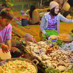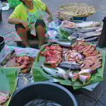 Auf den Märkten wird neben bekanntem Gemüse Grünzeug angeboten, das uns fremd ist, wir aber gerne mal probieren würden. Leider finden wir beim Mittagshalt in den kleinen Strassenrestaurants wenig Abwechslung, vor allem fehlt uns Gemüse auf dem Teller. Huhn, Schwein und Rind vom Grill, alles mit gleicher roter Einheitspaste bestrichen, lauwarm serviert, weil vorgegrillt (ein Ablöscher), dazu Reis. Vielleicht mal eine Nudelsuppe zur Abwechslung oder ein Curry. Schade, langsam wird das Essen eintönig; die grossen Gemüseportionen der Chinesen fehlen uns.