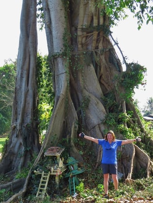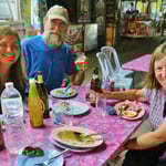 Auch andere Radfahrer auf Tour treffen wir wieder mehr an. Mit Yves, einem gebürtigen Belgier, seit mehr als 30 Jahren in den USA lebend, essen wir in Ban Pong Din zu Mittag. Franzi und Jan aus Deutschland fahren über Myanmar nach Indien; Jocelyn und ihr Vater Michael aus den USA, mit denen wir zwei Tage pedalen, sind vor fast zehn Monaten in Marokko gestartet. Die Zeit mit ihnen war interessant und kurzweilig. Good luck and all the best, Jocelyn and Mike! (FatherDaughterCyclingAdventures.com)