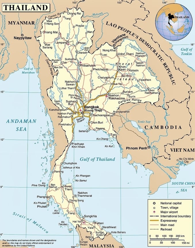 Ab sofort heisst es für uns auf der linken Strassenseite fahren. In Thailand herrscht Linksverkehr. Seit Anfang Dezember 2014 kurven wir durch das schöne Königreich zwischen Laos, Myanmar (Burma) und Malaysia, schätzen die vorzügliche Küche und lassen uns die Gastfreundschaft der Thais hier im Norden gefallen. Treten wird zum Genuss, nicht nur weil Berge allenfalls noch Hügel sind, kleine Nebenstrassen zum Bummelfahren einladen und Möglichkeiten zum Einkehren zahlreich sind – das gute, kalte Bier und der vorzügliche Kaffee sind Spitze! - sondern auch, weil die Thailänder rücksichtsvoll Auto fahren. Für viele Europäer ist das tropische Land in Asien, DAS Bade-Ferienland unter der Sonne schlechthin. Wir waren noch nie in dieser Ecke der Welt und lernen erst mal das interessante Hinterland abseits der bekannten Touri-Destinationen im Süden kennen, was uns ganz recht ist.