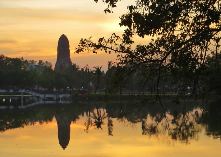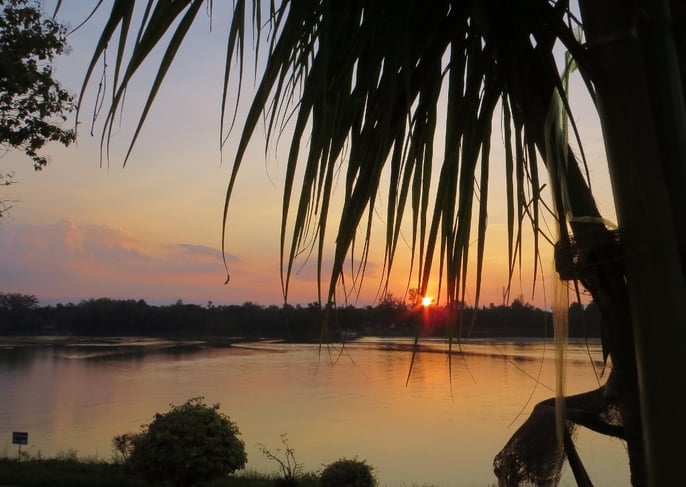 Bis nach Tak am Mae Nam Ping, nahe der burmesischen Grenze, treten wir überwiegend auf dem breiten Expressway Richtung Süden. Auf der guten Strasse mit dem komfortablen Seitenstreifen lassen sich in kurzer Zeit viele Kilometer abstrampeln; der Erlebnisfaktor ist aber gering und bald stellt sich Langeweile ein. Zeitdruck zwingt uns den Kompromiss auf. Wir wollen/müssen vor Weihnachten in der Hauptstadt sein um die weitere Reise vorzubereiten. Trotzdem, für die verbleibende Woche auf dem Rad bis Bangkok tüfteln wir an einer Alternative auf kleinen Strassen entlang des Flusses Mae Nam Ping. Es wäre jammerschade, die schöne Landschaft nur aus dem Augenwinkel wahrzunehmen und kaum Zeit für einen Schwatz und ein Bier zu haben.