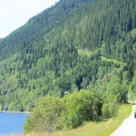 Die Strasse 720 entlang dem Beitstadfjord ist schmal, hat kaum Verkehr und moderate Steigungen. Einmal mehr zeigt sich, dass unbeachtete und darum wenig bekannte Nebenstrassen wahre Veloleckerbissen sind. Genussfahren pur! Norwegen ist hier wie das Emmental. Hügelig, verstreute Höfe, weidende Rindviecher, etwas Ackerbau, alles sehr gepflegt. Nur das viele Wasser will nicht so recht passen. Tiefblau und mit vielen Inseln macht sich der Storvatnet kurz bevor wir den Trondheimsfjord erreichen, breit. Der Schweiss fliesst in Strömen beim steilen Aufstieg. Lieber so, als wenn der Regen in die Schuhe rinnt.